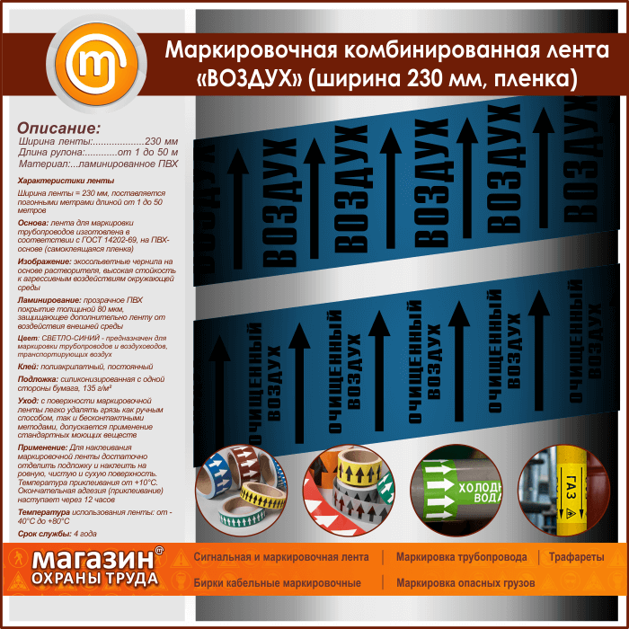 Маркировочная комбинированная лента «ВОЗДУХ» (ширина 230 мм, самоклеящаяся плёнка с ламинированием) в Москве купить