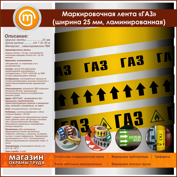 Маркировочная лента «ГАЗ» (ширина 25 мм, самоклеящаяся плёнка с ламинированием) в Москве купить