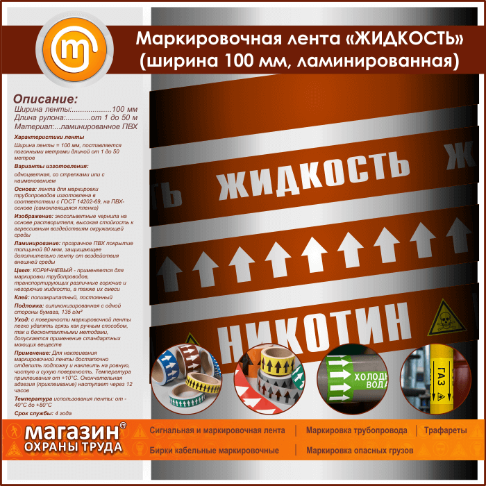 Маркировочная лента «ЖИДКОСТЬ» (ширина 100 мм, самоклеящаяся плёнка) в Москве купить
