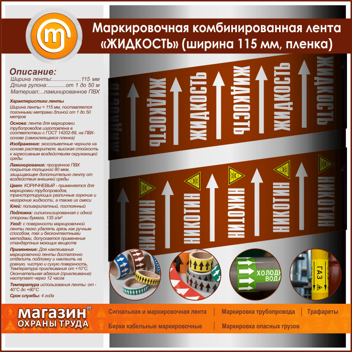 Маркировочная комбинированная лента «ЖИДКОСТЬ» (ширина 115 мм, самоклеящаяся плёнка) в Москве купить