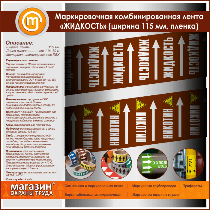 Маркировочная комбинированная лента «ЖИДКОСТЬ» (ширина 115 мм, самоклеящаяся плёнка с ламинированием) в Москве купить