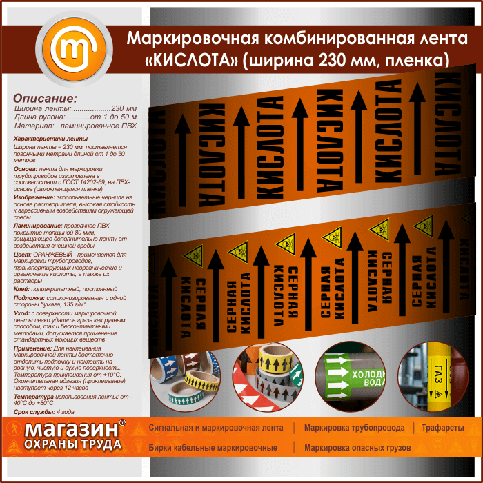 Маркировочная комбинированная лента «КИСЛОТА» (ширина 230 мм, самоклеящаяся плёнка с ламинированием) в Москве купить