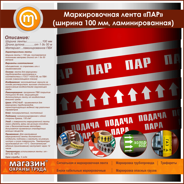 Маркировочная лента «ПАР» (ширина 100 мм, самоклеящаяся плёнка с ламинированием) в Москве купить