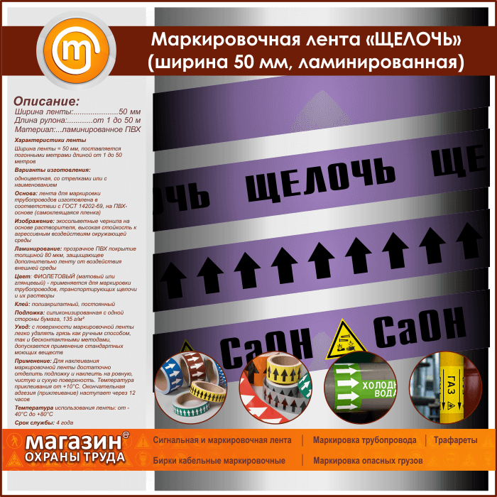 Маркировочная лента «ЩЕЛОЧЬ» (ширина 50 мм, самоклеящаяся плёнка) в Москве купить