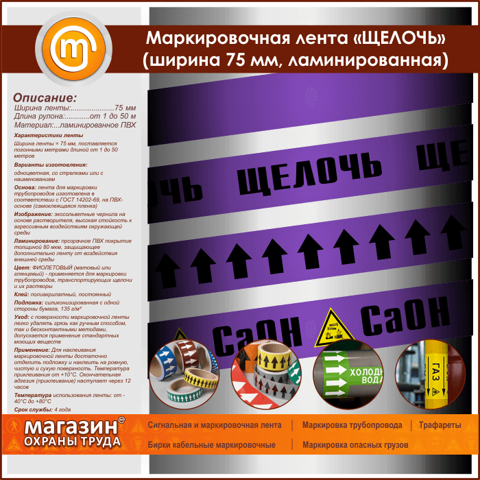 Маркировочная лента «ЩЕЛОЧЬ» (ширина 75 мм, самоклеящаяся плёнка с ламинированием) в Москве купить