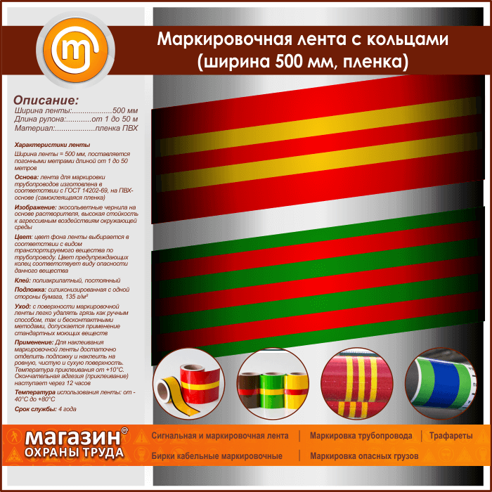 Маркировочная лента с кольцами (ширина 500 мм, самоклеящаяся плёнка) в Москве купить