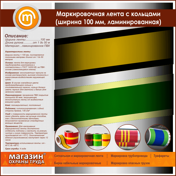 Маркировочная лента с кольцами (ширина 100 мм, самоклеящаяся плёнка с ламинированием) в Москве купить