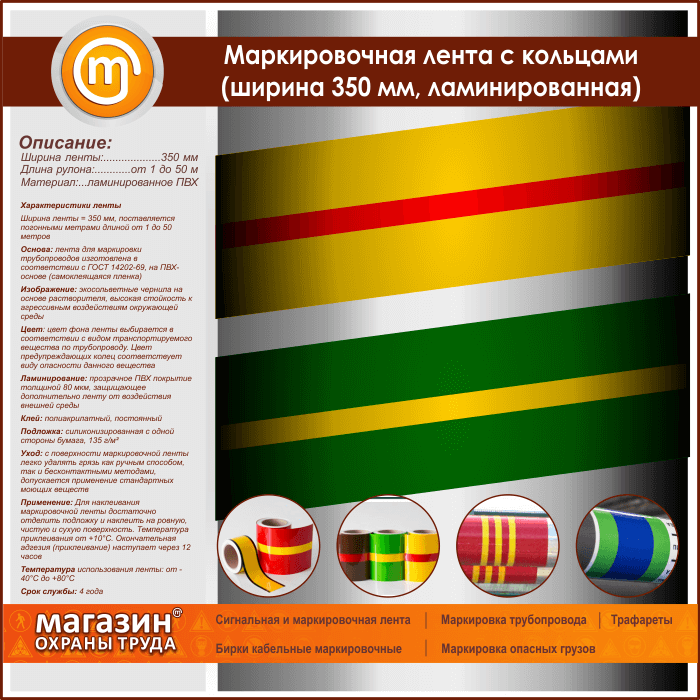 Маркировочная лента с кольцами (ширина 350 мм, самоклеящаяся плёнка с ламинированием) в Москве купить