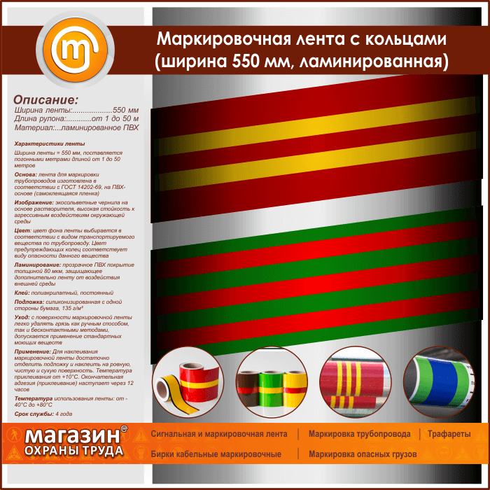 Маркировочная лента с кольцами (ширина 550 мм, самоклеящаяся плёнка с ламинированием) в Москве купить