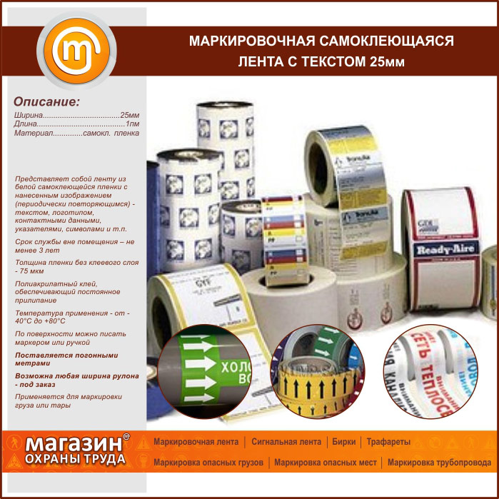 Маркировочная самокл. лента с текстом 25 мм