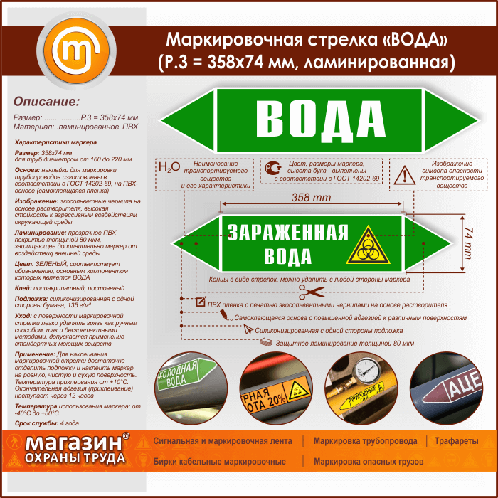 Маркировочная стрелка «ВОДА» (P.3 = 358х74 мм, самоклеящаяся плёнка с ламинированием) в Москве купить