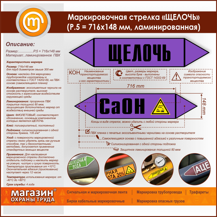 Маркировочная стрелка «ЩЕЛОЧЬ» (P.5 = 716х148 мм, самоклеящаяся плёнка с ламинированием) в Москве купить