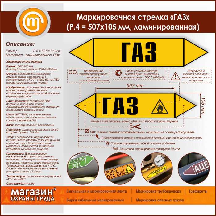 Маркировочная стрелка «ГАЗ» (P.4 = 507х105 мм, самоклеящаяся плёнка с ламинированием) в Москве купить