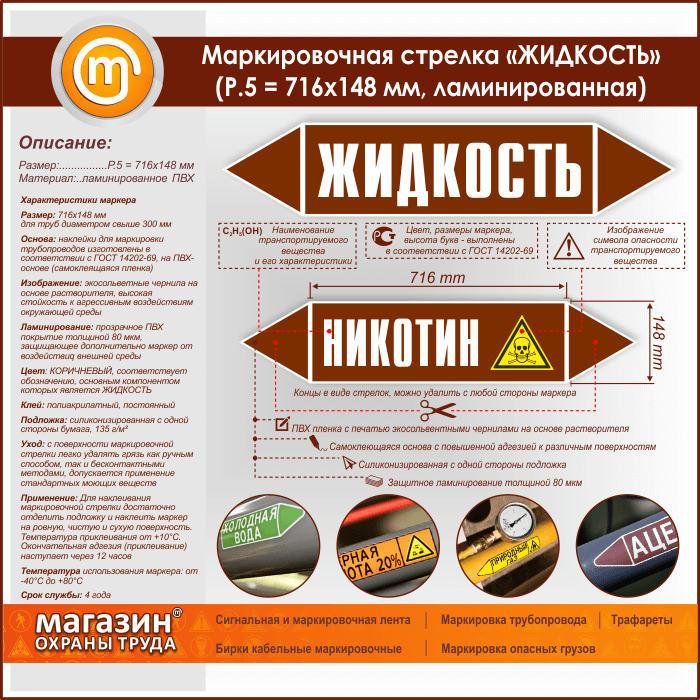Маркировочная стрелка «ЖИДКОСТЬ» (P.5 = 716х148 мм, самоклеящаяся плёнка с ламинированием) в Москве купить