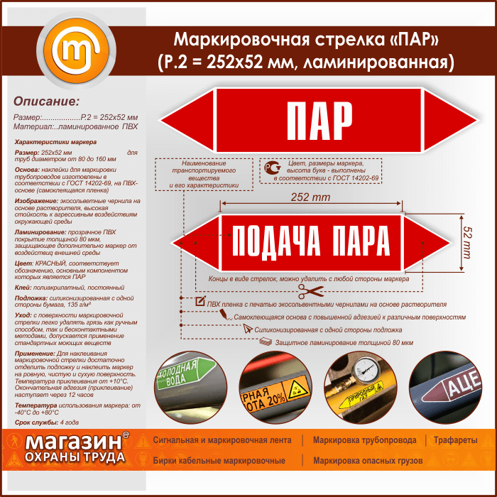 Маркировочная стрелка «ПАР» (P.2 = 252х52 мм, самоклеящаяся плёнка с ламинированием) в Москве купить