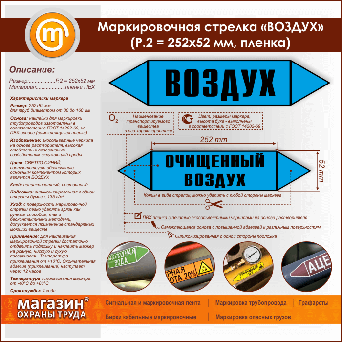 Маркировочная стрелка «ВОЗДУХ» (P.2 = 252х52 мм, самоклеящаяся плёнка) в Москве купить