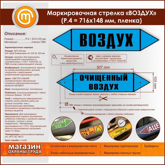 Маркировочная стрелка «ВОЗДУХ» (P.4 = 507х105 мм, самоклеящаяся плёнка) в Москве купить