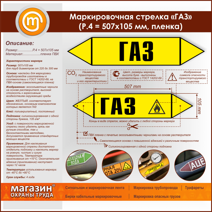 Маркировочная стрелка «ГАЗ» (P.4 = 507х105 мм, самоклеящаяся плёнка) в Москве купить