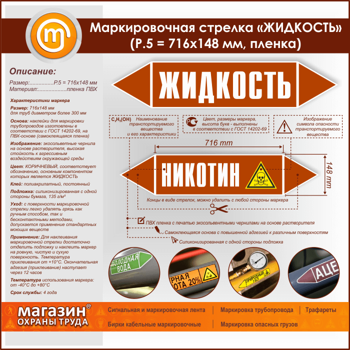Маркировочная стрелка «ЖИДКОСТЬ» (P.5 = 716х148 мм, самоклеящаяся плёнка) в Москве купить