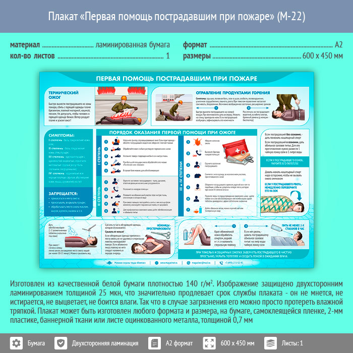 Плакат «Первая помощь пострадавшим при пожаре» (М-22, ламинированная бумага, А2, 1 лист) в Москве купить