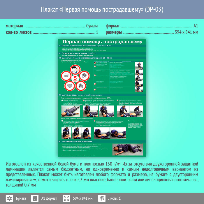 Плакат «Первая помощь пострадавшему» (ЭР-03, бумага, А1, 1 лист) в Москве купить