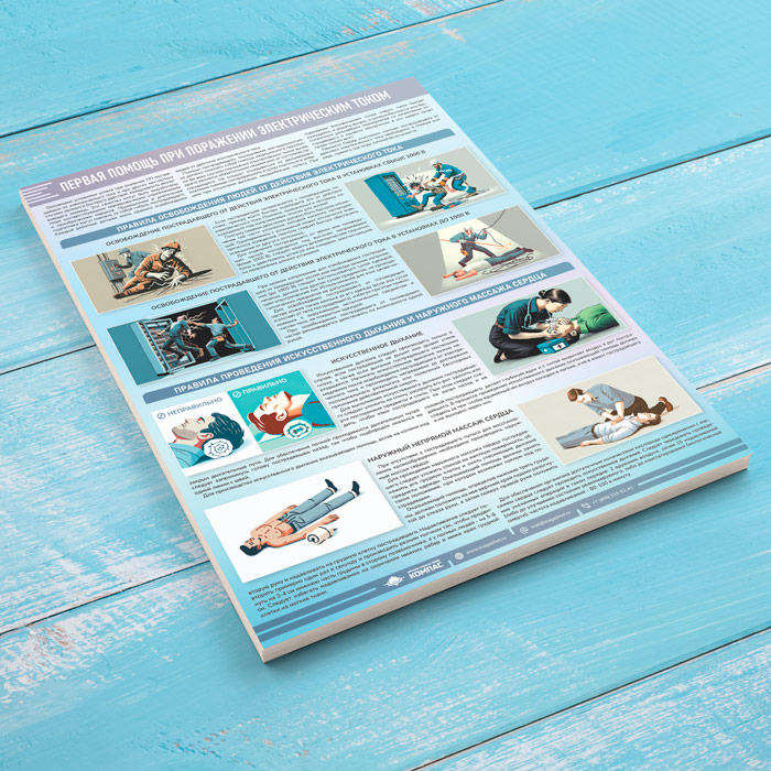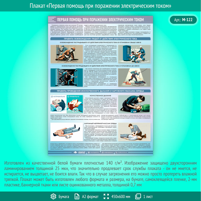 Плакат «Первая помощь при поражении электрическим током» (М-122, ламинированная бумага, А2, 1 лист) в Москве купить