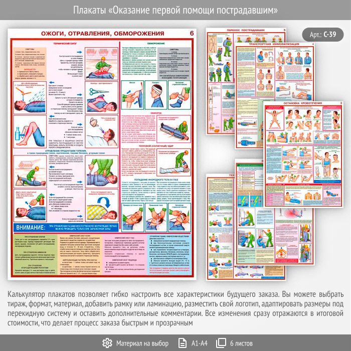 Плакат «Оказание первой помощи пострадавшим» (С-39, 6 листов) в Москве купить
