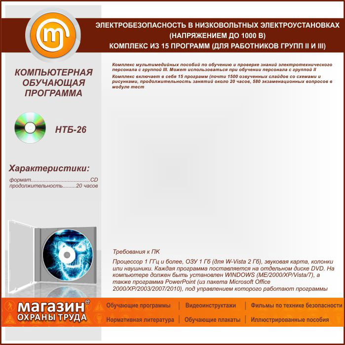 «Электробезопасность в низковольтных электроустановках (напряжением до 1000 В)», комплекс из 15 обучающих программ (для работников групп II и III) в Москве купить