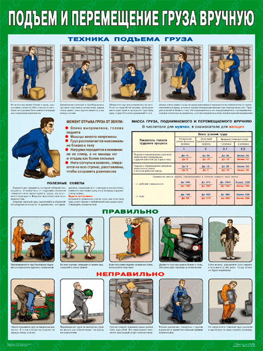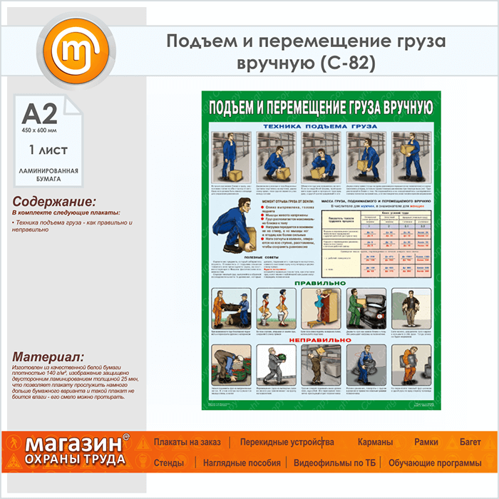 Плакат «Правила перемещения грузов вручную» (С-82, ламинированная бумага, А2, 1 лист) в Москве купить