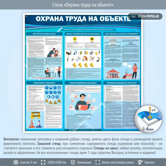 Стенд «Охрана труда на объекте» (OT-34-POPULAR) в Москве купить