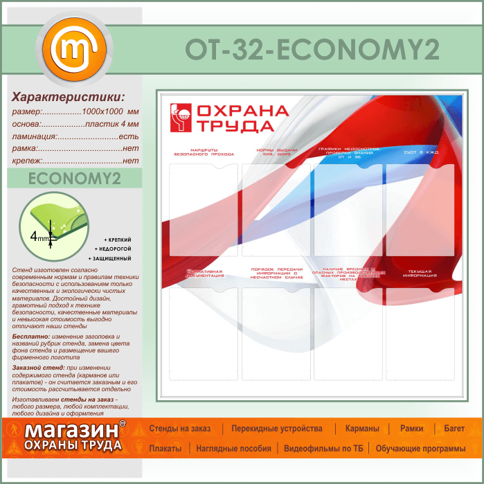 Стенд «Охрана труда» с 8 карманами (OT-32-ECONOMY2) в Москве купить