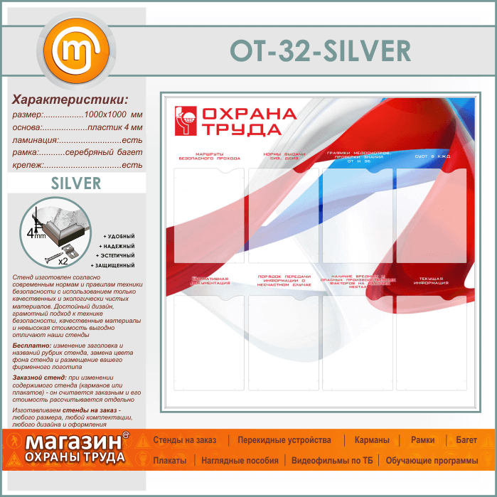 Стенд «Охрана труда» с 8 карманами (OT-32-SILVER) в Москве купить