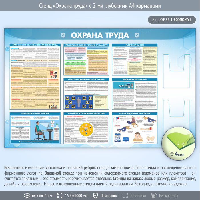 Стенд «Охрана труда» с 2-мя глубокими А4 карманами (OT-35.1-ECONOMY2) в Москве купить