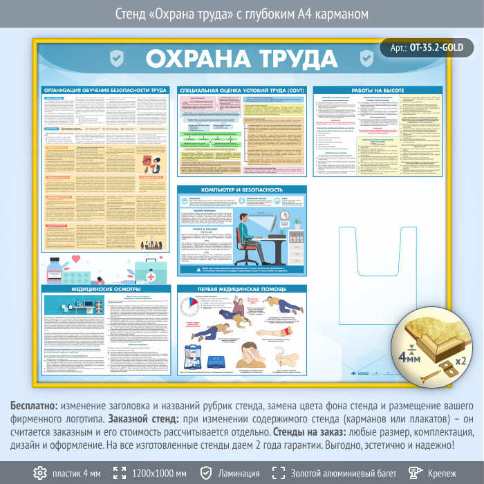 Стенд «Охрана труда» с глубоким А4 карманом (OT-35.2-GOLD) в Москве купить