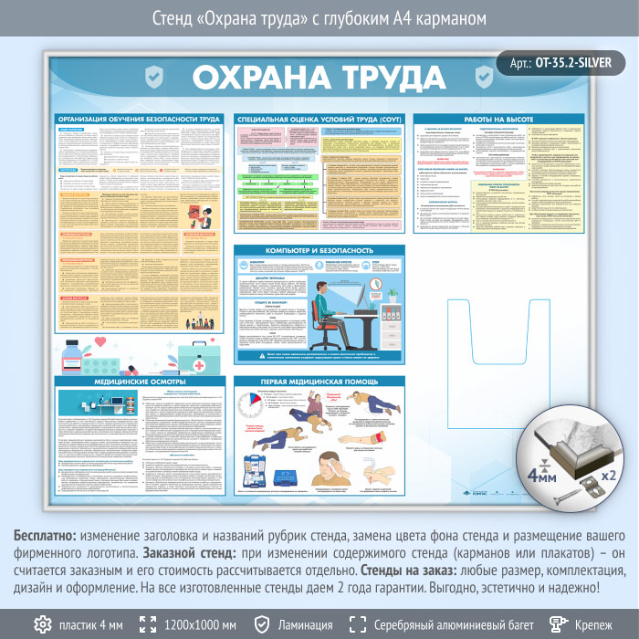 Стенд «Охрана труда» с глубоким А4 карманом (OT-35.2-SILVER) в Москве купить