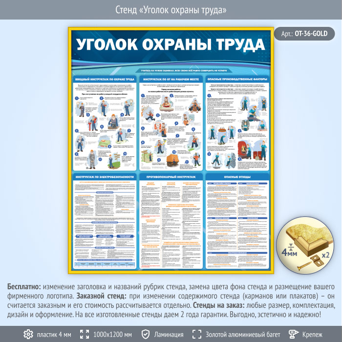 Стенд «Уголок охраны труда» (OT-36-GOLD) в Москве купить