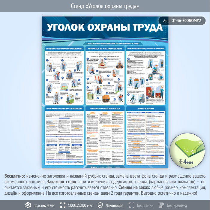 Стенд «Уголок охраны труда» (OT-36-ECONOMY2) в Москве купить