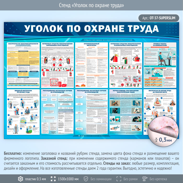 Стенд «Уголок по охране труда» (OT-37-SUPERSLIM) в Москве купить