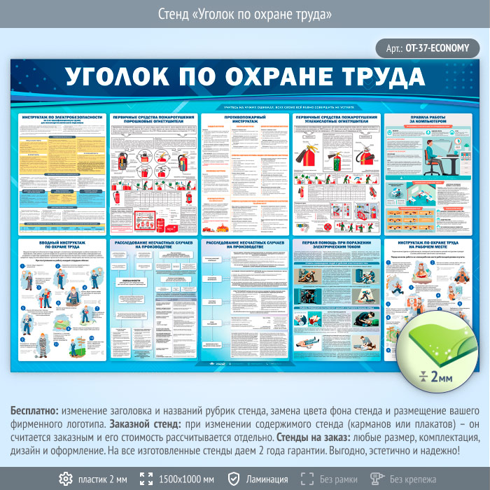 Стенд «Уголок по охране труда» (OT-37-ECONOMY) в Москве купить