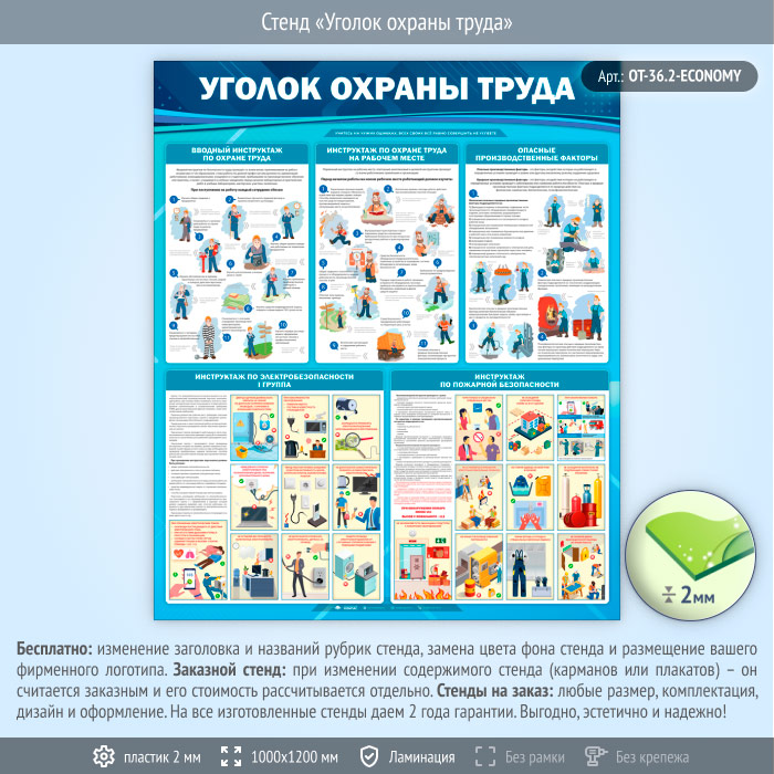 Стенд «Уголок охраны труда» (OT-36.2-ECONOMY) в Москве купить
