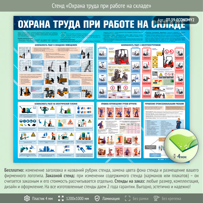 Стенд «Охрана труда при работе на складе» (OT-39-ECONOMY2) в Москве купить
