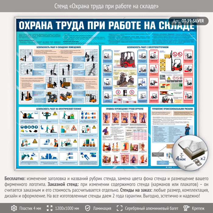 Стенд «Охрана труда при работе на складе» (OT-39-SILVER) в Москве купить