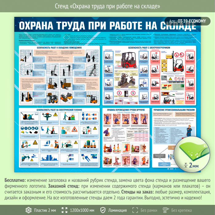 Стенд «Охрана труда при работе на складе» (OT-39-ECONOMY) в Москве купить