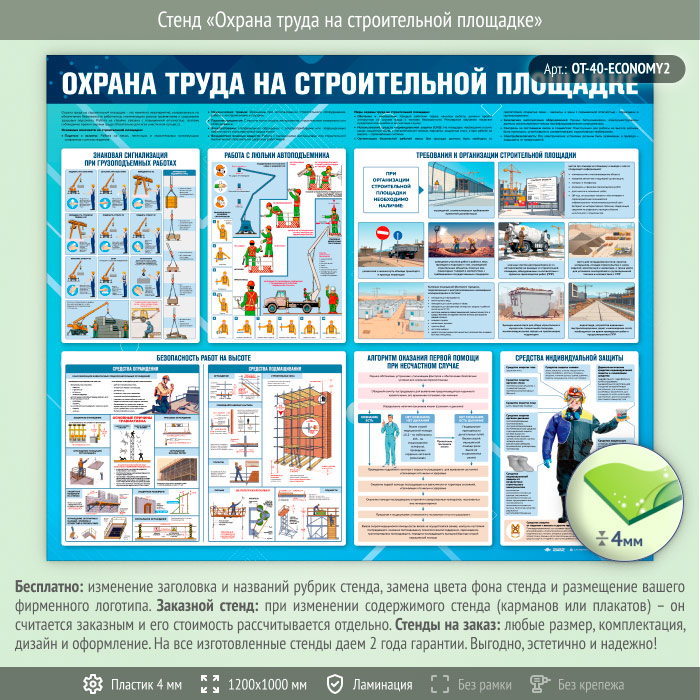 Стенд «Охрана труда на строительной площадке» (OT-40-ECONOMY2) в Москве купить