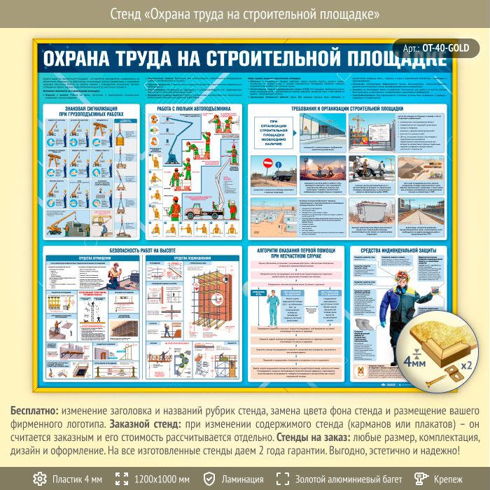 Стенд «Охрана труда на строительной площадке» (OT-40-GOLD) в Москве купить