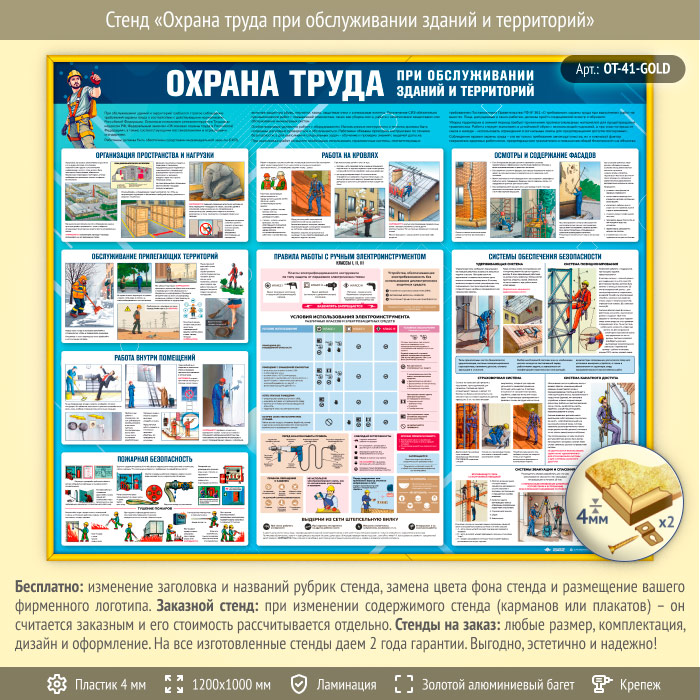 Стенд «Охрана труда при обслуживании зданий и территорий» (OT-41-GOLD) в Москве купить