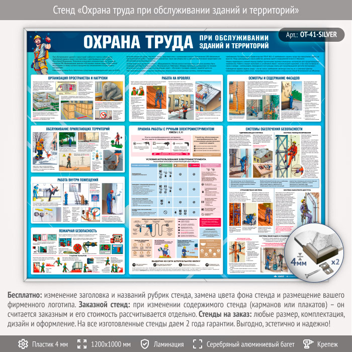Стенд «Охрана труда при обслуживании зданий и территорий» (OT-41-SILVER) в Москве купить