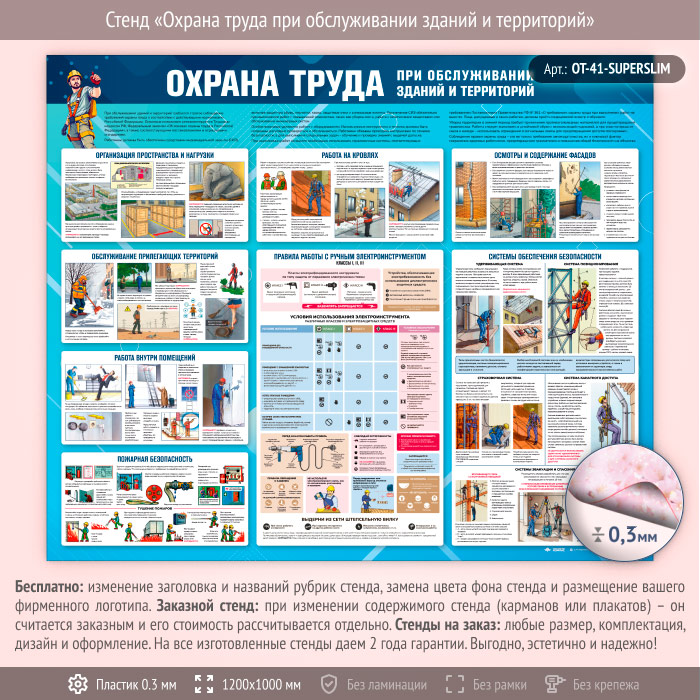 Стенд «Охрана труда при обслуживании зданий и территорий» (OT-41-SUPERSLIM) в Москве купить