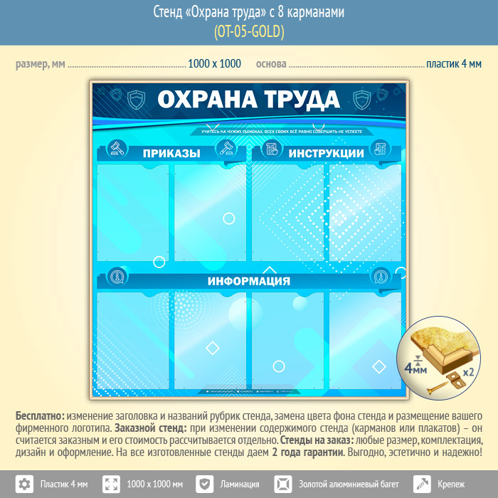 Стенд «Охрана труда» с 8 карманами (OT-05-GOLD) в Москве купить