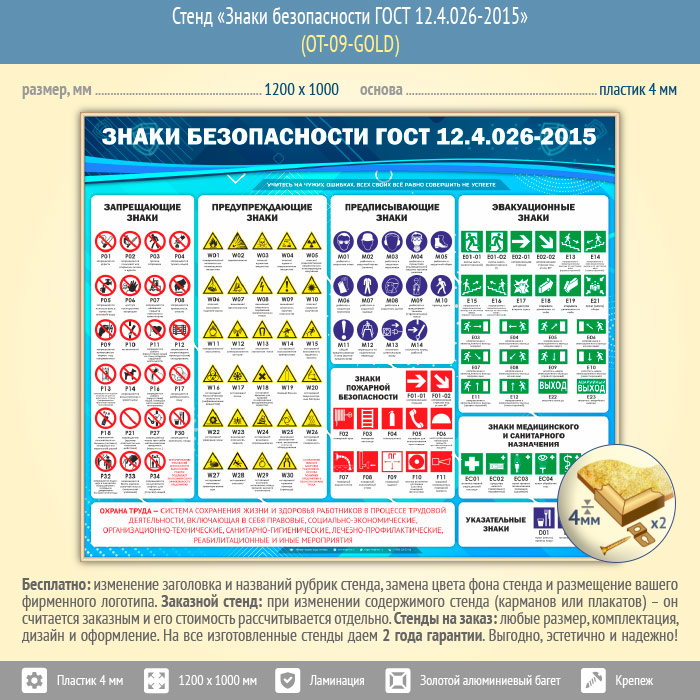 Стенд «Знаки безопасности ГОСТ 12.4.026-2015» (OT-09-GOLD) в Москве купить